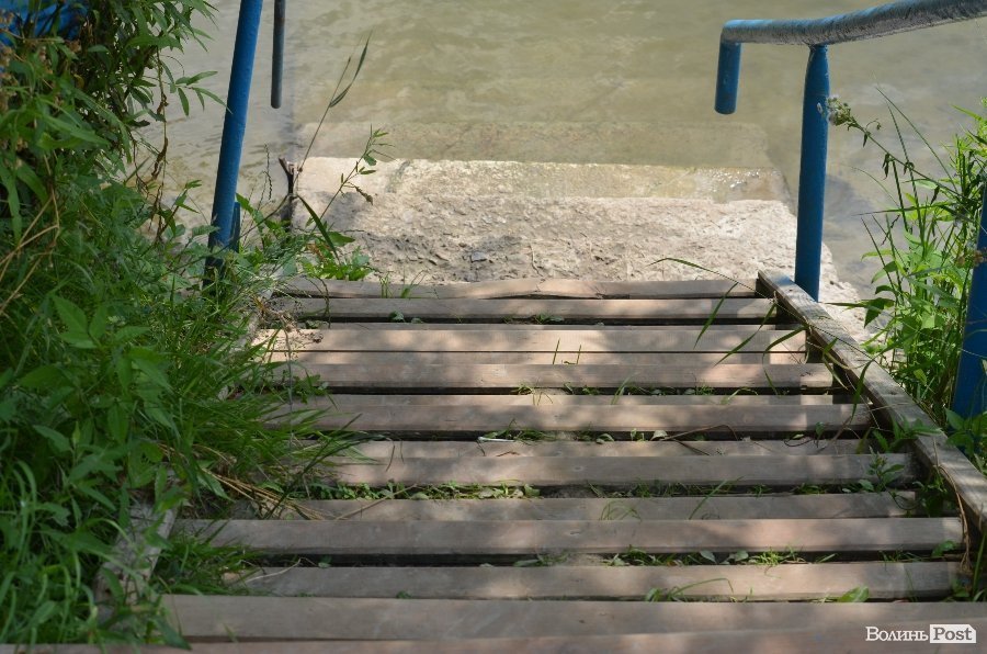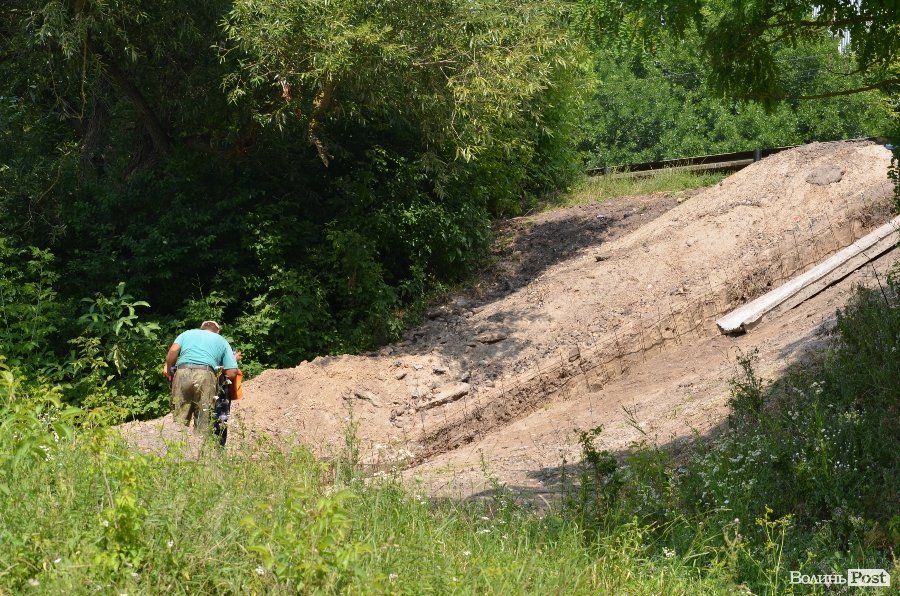 Наступний пляж, на який завітали журналісти ВолиньPost, знаходиться по вулиці Ковельській. Перше, що складає незручності на цьому березі – це спуск до води з мосту. Правильніше буде сказати - відсутність спуску. На час прибуття журналістів на стежці працювали робітники, але робили не сходи, а стік для води.
