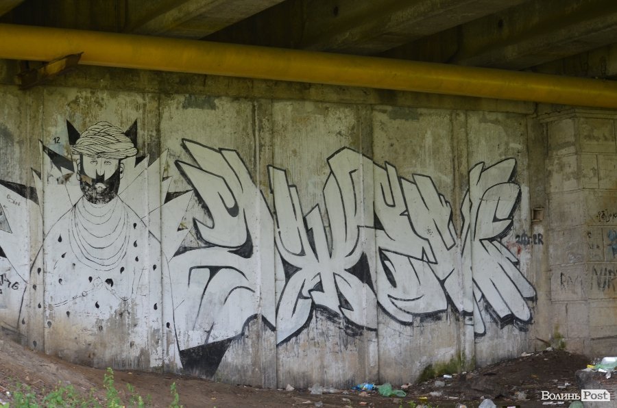 На цьому пляжі не завадило б прибрати сміття. Особливо його багато під мостом, стіни якого прикрашені графіті.