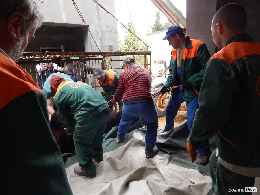 Найперша проблема, яка виникла під час реконструкції – це перевезення ведмедів у інші клітки, адже старі вольєри переобладнують на новий, величезний, з басейном. Перевезти 350-ти кілограмових хижаків виявилося доволі непросто, тому що в Луцьку немає ветеринарів, котрі змогли б розрахувати правильно дозу препарату, що змусить «виключитися» тварину. Спеціалістів викликали аж із Києва.Після того, як величезних тварин присипили, їх за допомогою екскаватора відвезли у тимчасові клітки.