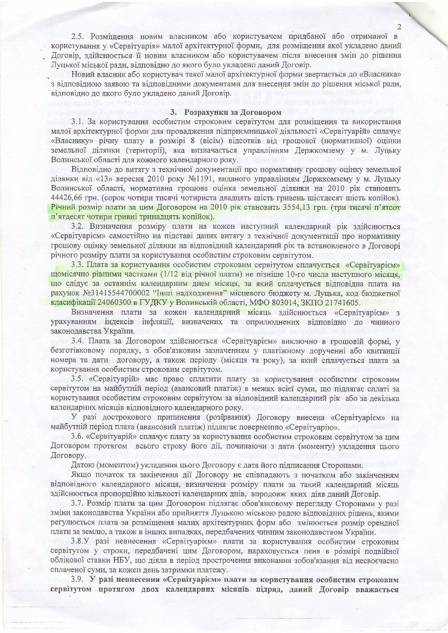 «Дійсно було голосування про надання під існуючими магазинами продовження оренди, тобто оренди землі в тій площині, що була оренда в сервітуті. Ми потрапили тоді в таке законодавче поле, що давались дозволи на встановлення цих магазинів на три роки. Тоді дозвіл давався на оренду в сервітуті - це було тоді 8% від грошової оцінки і так само сплачувалась орендна плата 36 тисяч гривень в рік.