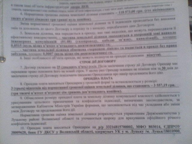 «Хто її візьме в оренду, як там нічого не можна будувати? Євген Ткачук щорічно сплачує за оренду - це в сумі 3557 гривень в рік. Ця ділянка суміжна з земельною ділянкою для будівництва будинку, яка є у його власності.