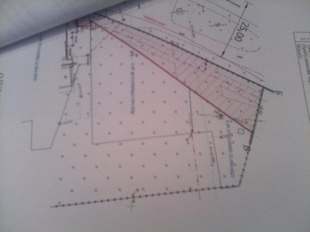 Проте на цій земельній ділянці будувати нічого не можна, адже, як видно на схемі, вона знаходиться на 80 % в сервітуті і на ній заборонено будувати, оскільки через цю, як виявилось ділянку з сюрпризом, ідуть кабелі і газові труби високого тиску. До того ж Євгену Ткачуку доводиться сплачувати за оренду специфічного шматка землі, якого навіть на 1% не використовує, близько трьох з половиною тисяч гривень в рік.