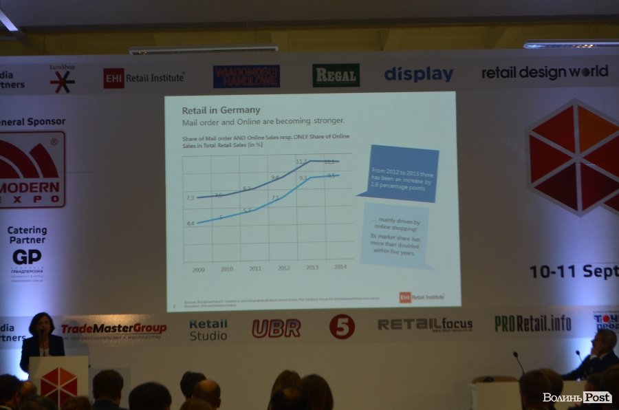 Спікер форуму Клаудія Горберт (Claudia Horbert) директор з дослідів планування і дизайну магазинів EHI Retail Institute (Кельн, Німеччина) виступила з доповіддю на тему: «Міжнародні тенденції дизайну в роздрібній торгівлі – як побудувати хороший магазин».