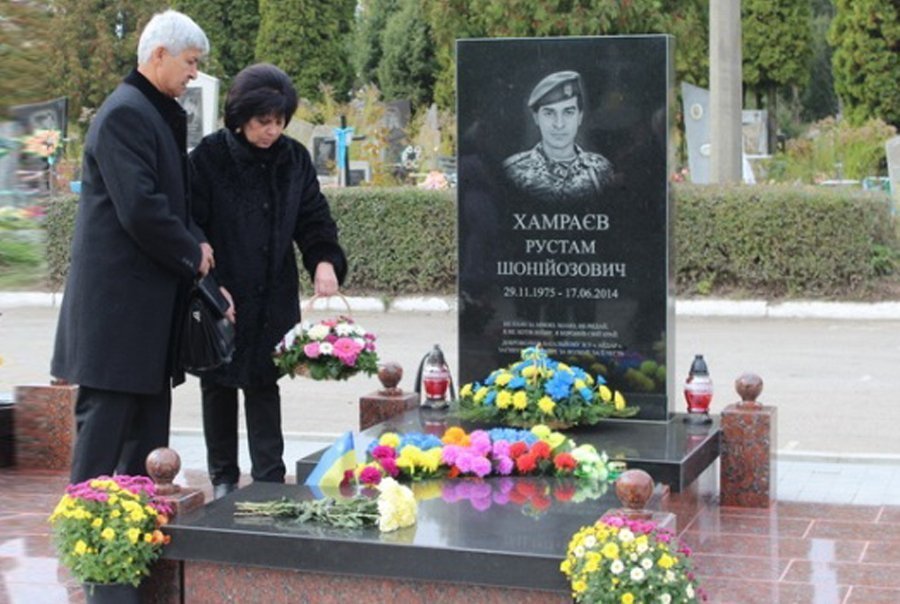 17 червня 2014 року на полі бою солдат Рустам Хамраєв був розстріляний впритул з крупнокаліберного кулемета з танка – розривні кулі поцілили і розтрощили голову, хребет і ногу – смерть була миттєвою. Тіло Рустама дві доби пролежало на полі бою, ті безкінечно довгі дві доби, коли батьки телефонували сину раз за разом з надією, що він відповість, дві доби над тілом патріота на полі бою за українську землю звучав Гімн України. Він загинув смертю мужнього воїна, адже з стародавніх часів гідною смертю для чоловіків вважалась смерть на полі бою. Однак, навіть цей факт не зменшить біль втрати у батьків і у його сина Алішера, для якого Рустам заховав подарунок на балконі, який знайшла Антоніна Хамраєва, прибираючи там. Розкривши пакет вона знайшла майданівську каску, наколінники в яких Рустам мужньо стояв на Майдані, і записку: «Дорогому синочку Алішерчику від тата на пам’ять, згадку. Цілую, обіймаю, твій тато Рустам».