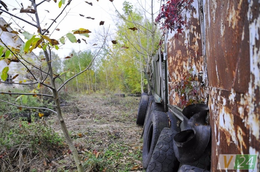 ...Величезні площі густо поросли вже майже лісом. У паркані лучани давно поробили "ходи", від яких в гущавину колишнього містечка час від часу ведуть дивні стежки.