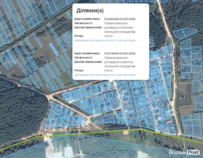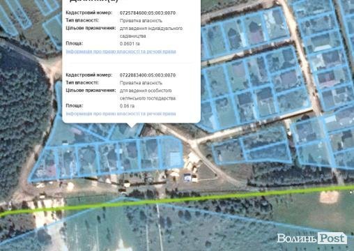 Наступну лінія розпочалась з дач, які належать бізнесменам різного ґатунку. А от за ними згідно реєстрів володіє земельною ділянкою Гіль Тетяна Василівна — дружина колишнього прокурора Волині Андрія Гіля.