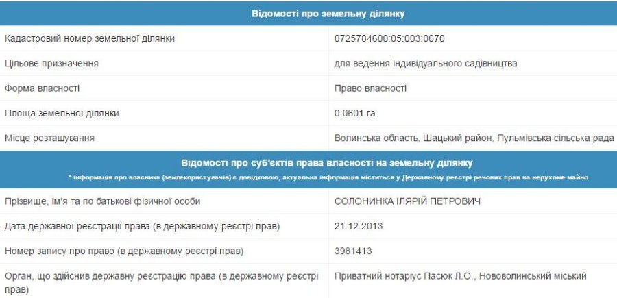 За даними з онлайнової кадастрової карти, землю придбала Галина Андріївна ще у 2013 році. А нині вона працює помічником судді у Луцькому міськрайонному суді Волинської області. Минулоріч жінка проходила перевірку тож подавала декларацію за 2014 рік.