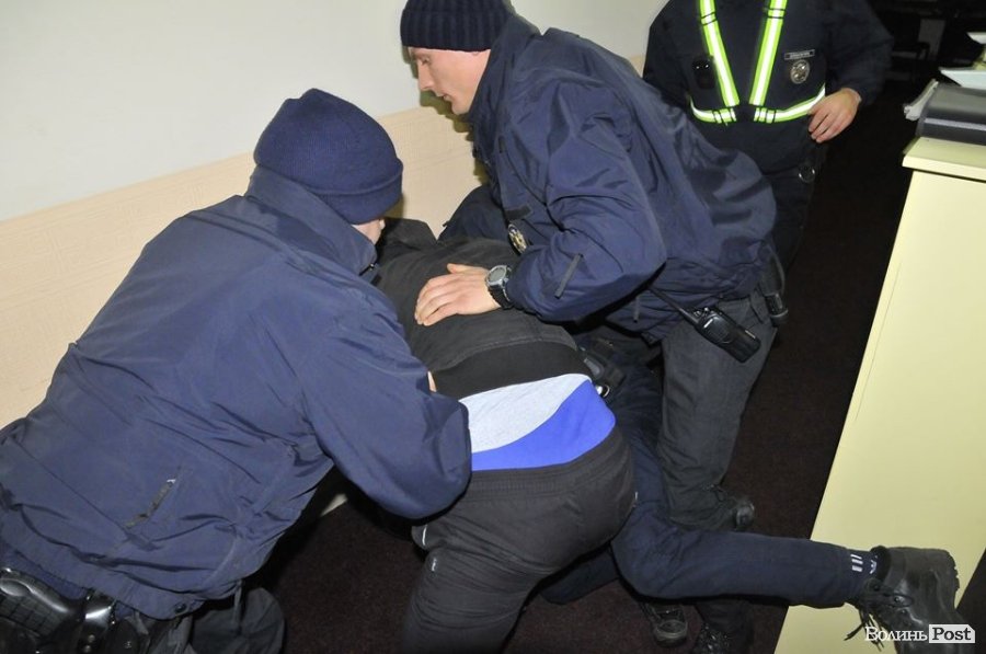 Тож до чоловіка застосували заходи фізичного впливу та одягнули на нього кайданки.