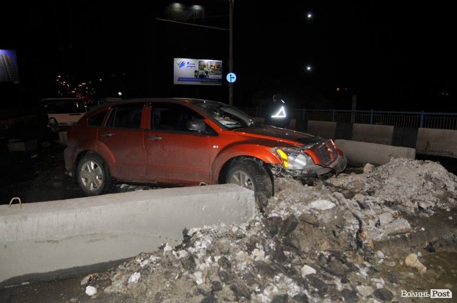 Патрульні отримали виклик про дорожньо-транспортну пригоду на вулиці Рівненській. Тут у зоні ремонту дорожнього покриття стояли дві розтрощені автівки. На мості зіткнулиcя мікроавтобус Nіssan та позашляховик Doudgе, автомобіль ВАЗ дивом «проскочив».