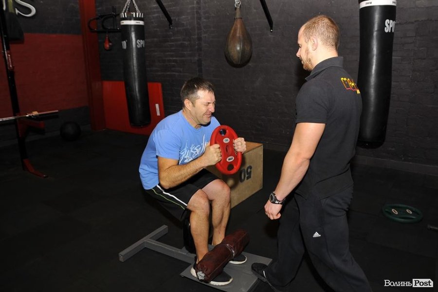 Стандартний початок заняття – «дали» ногам знати на біговій доріжці, потім 5-ть хвилин вертілися-присідали-нагиналися. А тоді вже добряче розігріті спортсмени-початківці взялися апгрейдити свої м’язи.