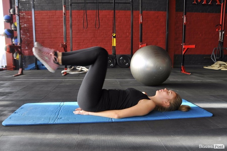 Останнім ривком стало качання нижнього пресу. Журналістка не опускала ноги на підлогу, а підіймала їх з «підвішеного» стану.