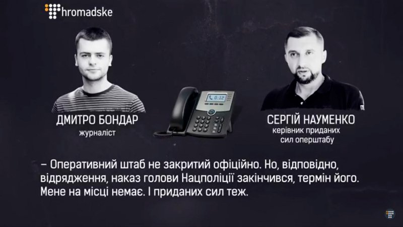 «Думаю, що до кінця місяця повинен запрацювати, я може даже й раніше. Ну, знову ж таки, не хочу бути там шоб обіцять ілі ще щось. Я думаю питання це комплексне і воно повинно вирішуватися на рівні держави. А що стосується поліцейських – поліцейські повинні виконувати ті функції, які передбачені Законом Про Національну поліцію», - каже він.