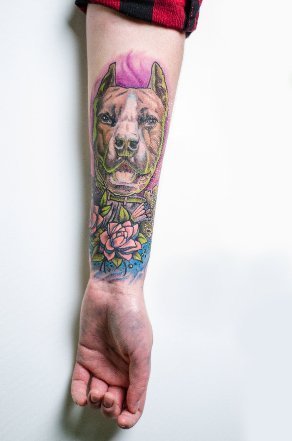 Перша історія про дівчину, яка дуже любить свою собаку Дарту і в її честь на руці господарки з’явилось велике та яскраве татуювання з зображенням улюбленця.