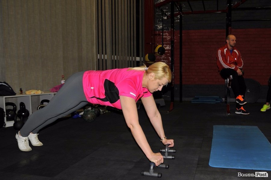 Останнью вправою був вихід в планку з жимом над головою.
