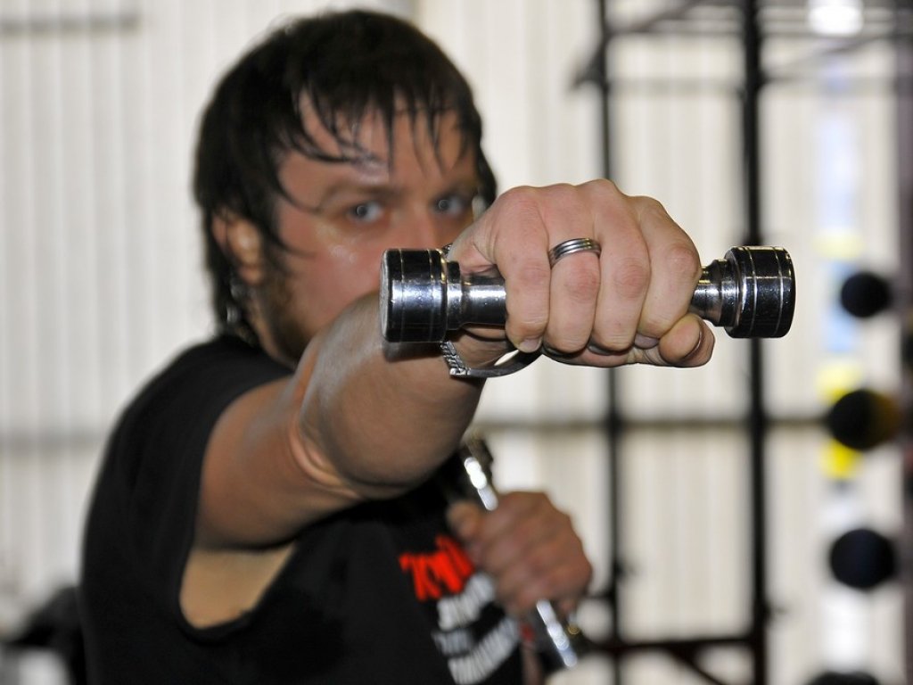 Останьою вправою були викиди рук із кілограмовими гантелями.