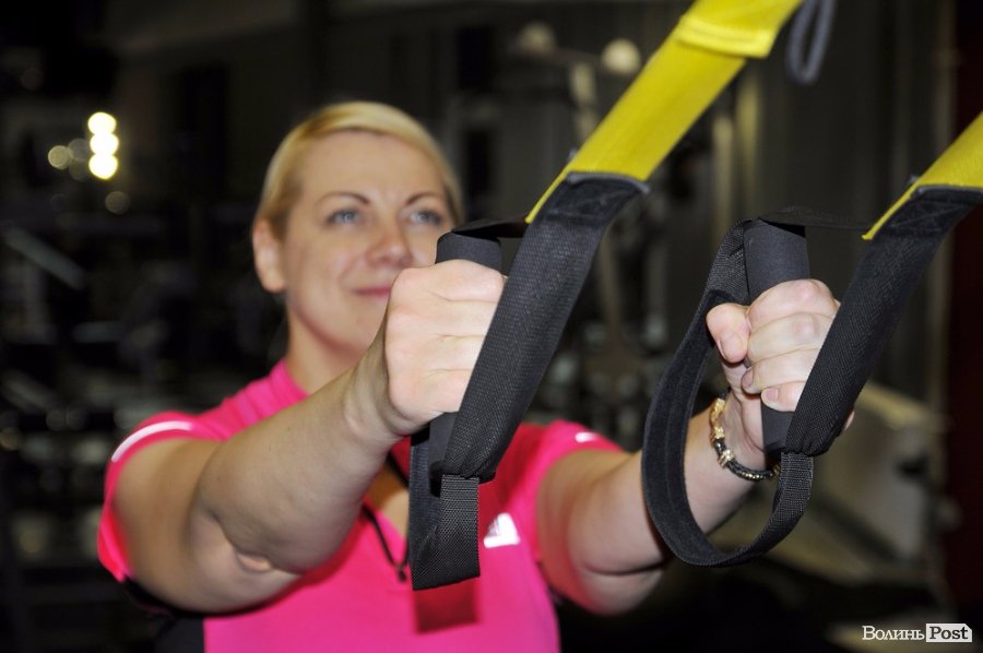 Для Тетяни Віталій підготував комплекс активних вправ. Спершу чиновниця робила вистибування з петрлями TRX.