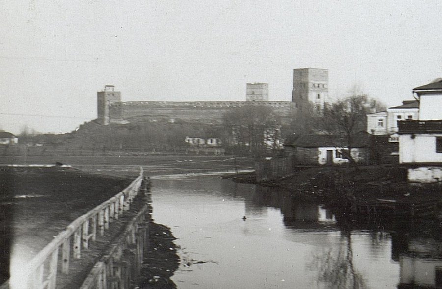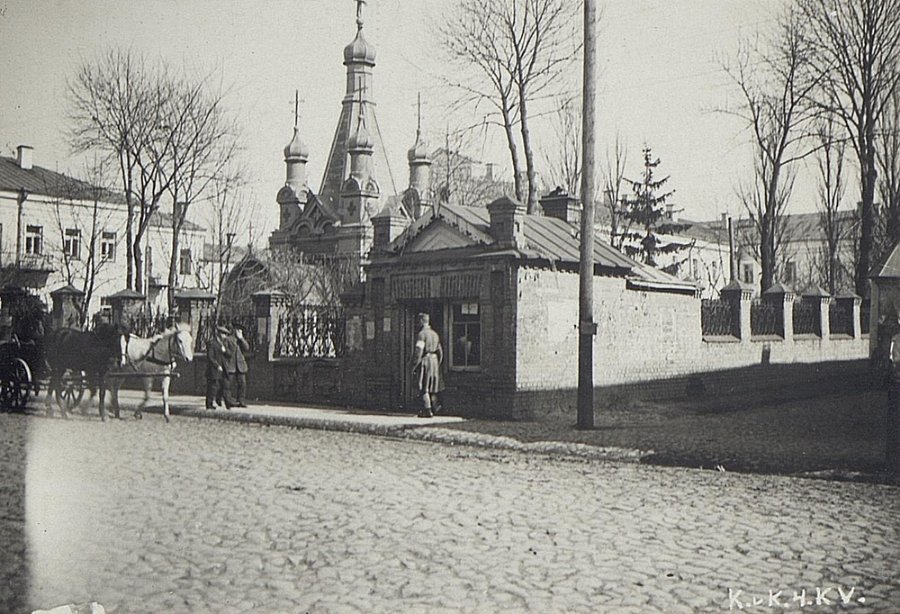 Зверніть увагу на центральне місце зображення. За каплицею – корпус монастиря тринітарів, у якому зараз військовий госпіталь. Будинок зліва отримав третій поверх, каплицю Іверської Богоматері знищили у 1959-1960, пам’ятника Бойку тоді ще в принципі не було (хлопцеві тоді було тільки 14 років), як і зараз нема після декомунізації.