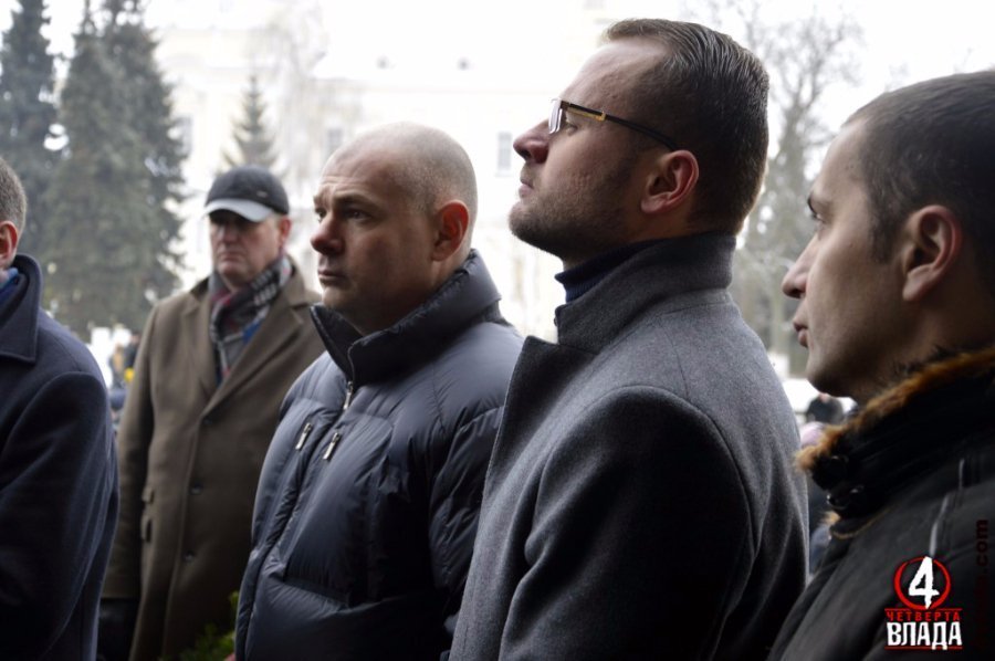 Депутати Луцької міськради Микита Рабан (крайній справа) та Ігор Поліщук (посередині) із своїм «укропівським» керівником Ігорем Палицею
