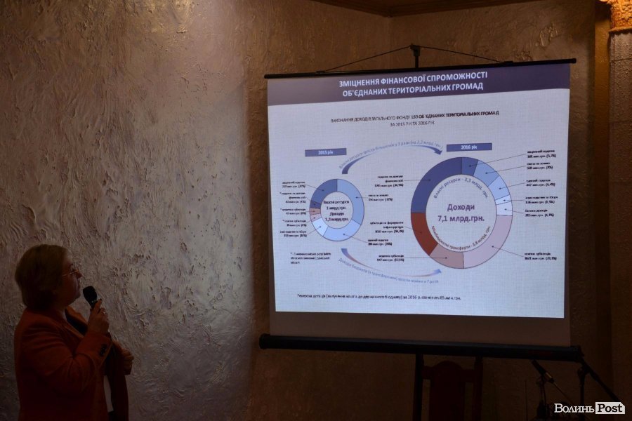 У результаті станом на 2016 рік доходи ОТГ становили 7,1 мільярда гривень – 3,3 власних ресурсів та 3,8 міжбюджетних трансфертів. Проте Попова визнала, що громади, які об’єдналися пізніше, вже не отримують настільки багато коштів, як «першопрохідці». Мовляв, раніше перші громади ділили 1 мільярд суми підтримки, а тепер на 366 громад припадає лише 1,5 мільярда.