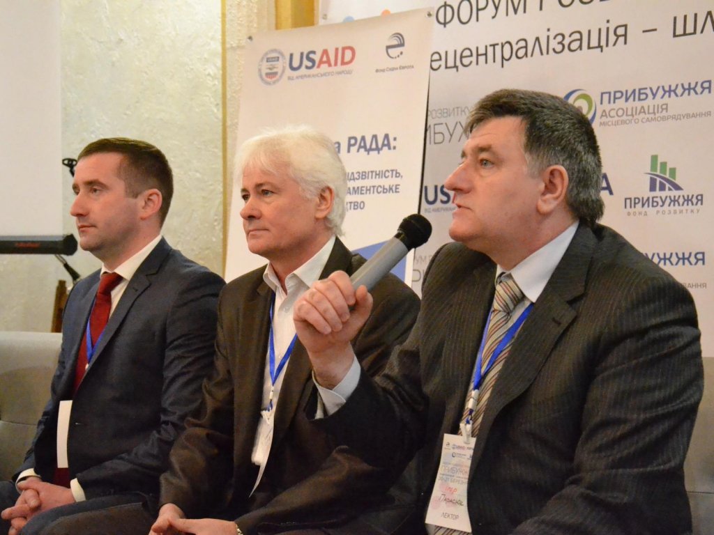 Відкривав форум координатор проекту USAID РАДА Ігор Парасюк. В рамках проекту «Модельний округ» Ігор Гузь отримує підтримку від організації. За словами Парасюка, для підтримки децентралізації із «модельних» нардепів найактивніше працює саме представник Прибужжя.