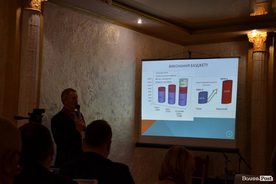 Експерт Офісу реформ Василь Гром наголосив на необхідності громадам заробляти більше коштів власними силами. Адже поки що на Волині 70% видатків громади «закривають» за рахунок коштів, які «хтось дає». І лише 18% - ті, які заробляють на територіях, тому такі заробітки треба підвищувати.