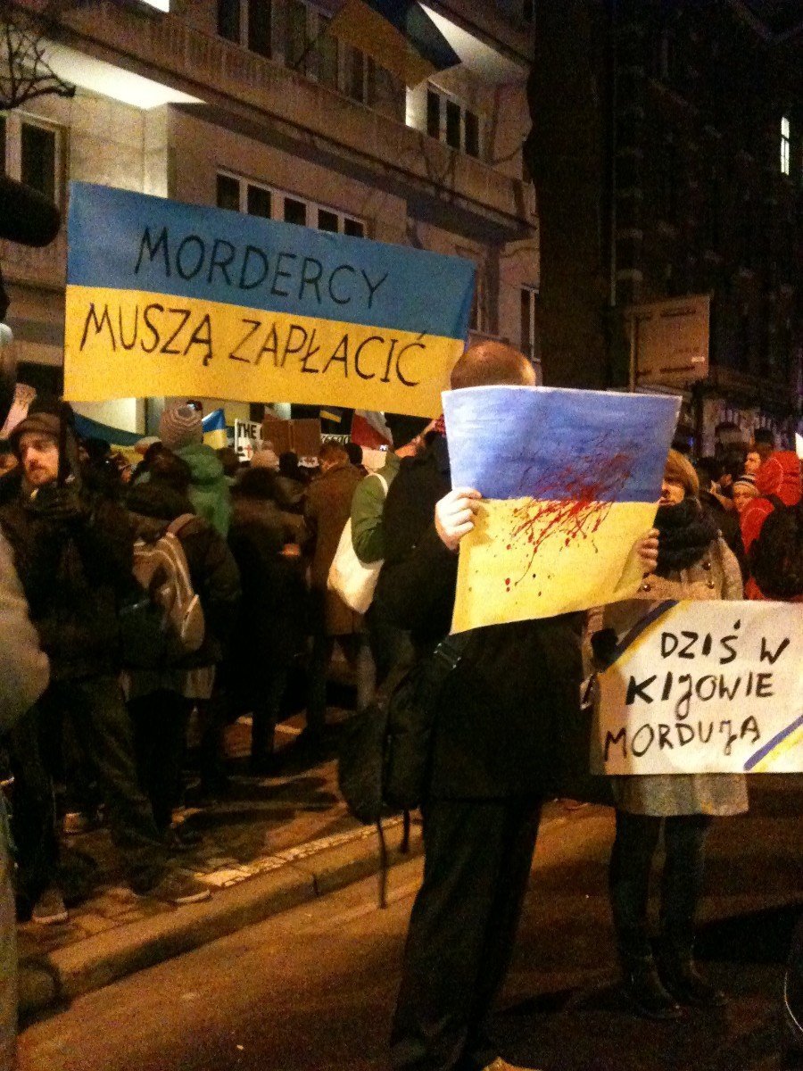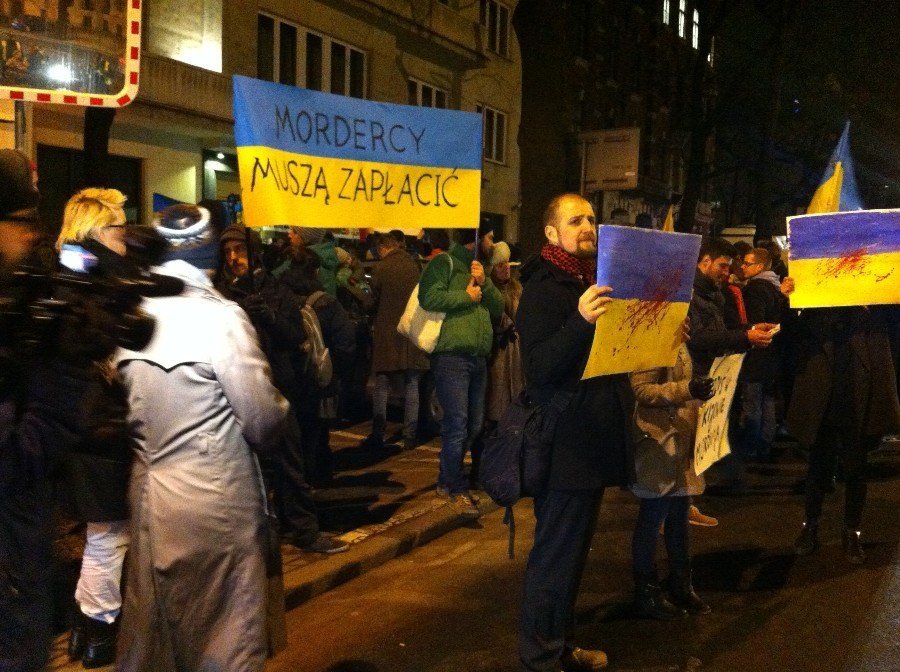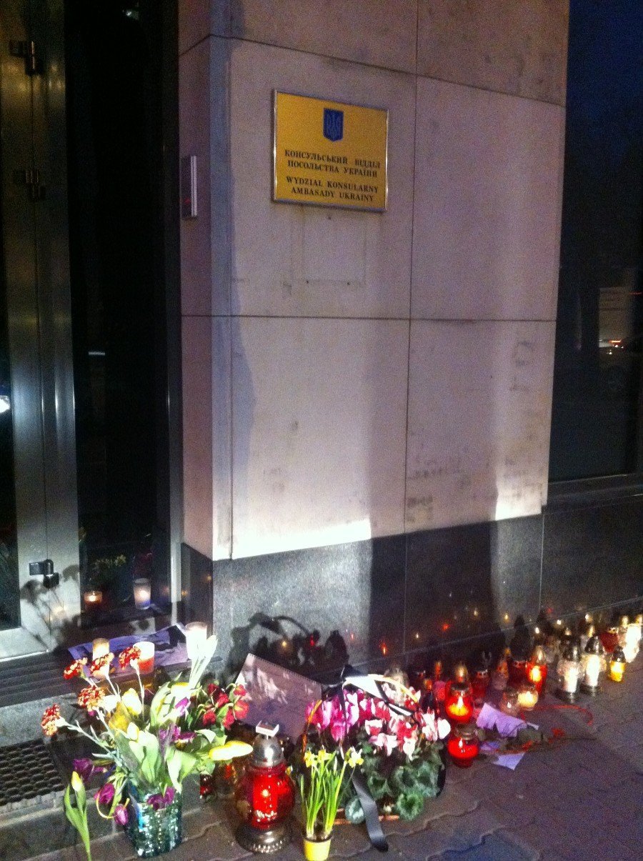 18 лютого, коли Євромайдан набув нових трагічних оборотів, біля Посольства України в Варшаві почали збиратися люди. Спочатку їх було 3, потім 10, потім 50, і під кінець робочого дня їх кількість наблизилася до 250 чоловік. Серед числа цих людей були не лише українці, але й поляки, які не можуть спокійно реагувати на події в Україні. Всі вони приносили до Консульського відділу Посольства свічки, квіти, фото загиблих, читали молитви... Пізніше, до народу приєднався і євродепутат Коваль, який звертався до польського уряду з проханням вплинути на українську владу.