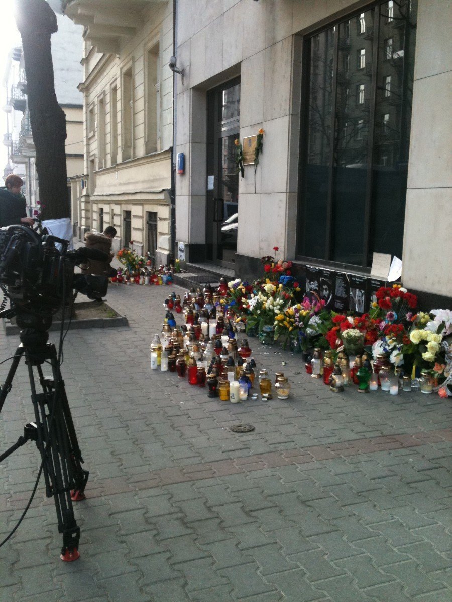 Так, як Посольство України розташоване в урядовому кварталі Варшави(в тому числі, поруч з Міністерством закордонних справ Польщі), то 24 години на добу вулиця переповнена польськими та іноземними телевізійниками, котрих останніми днями хвилює єдине питання - українське.