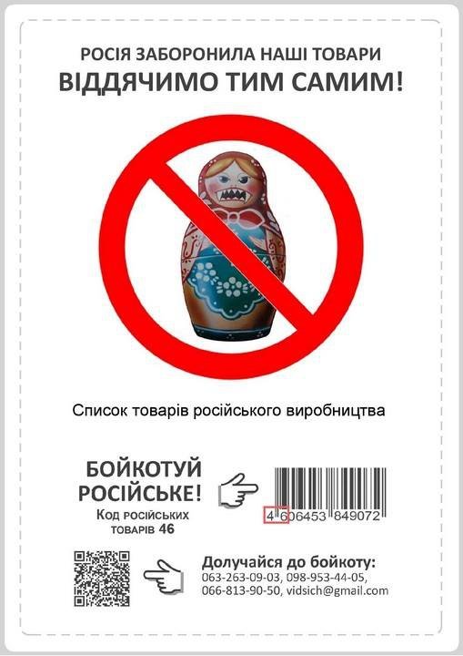 Отже, бойкотувати російську продукцію не важко і зараз це обов’язок кожного громадянина!