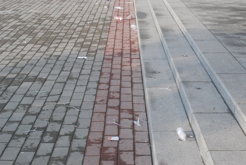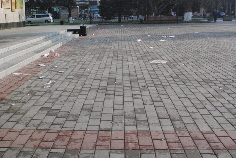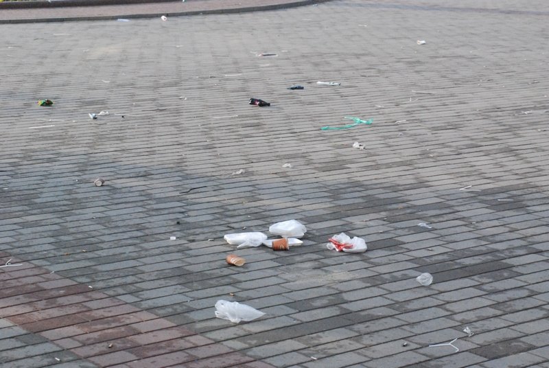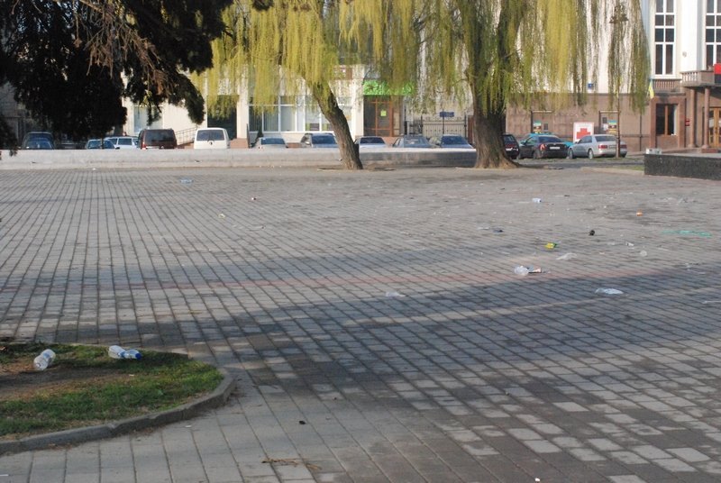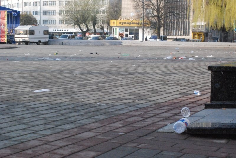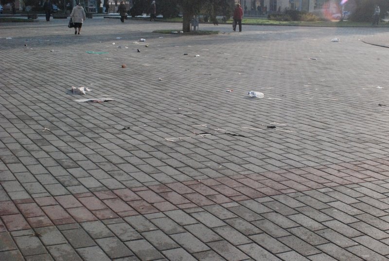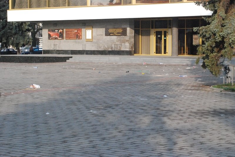 В принципі така ситуація після кожного концерту в Луцьку, але це ж був кандидат в президенти, який має пропонувати щось нове. Натомість маємо традиційний набір політагітації останніх кільканадцяти років: велика сцена, співаки-агітатори, кандидат з звичайним набором популізму і ранкове сміття біля входу в драмтеатр.