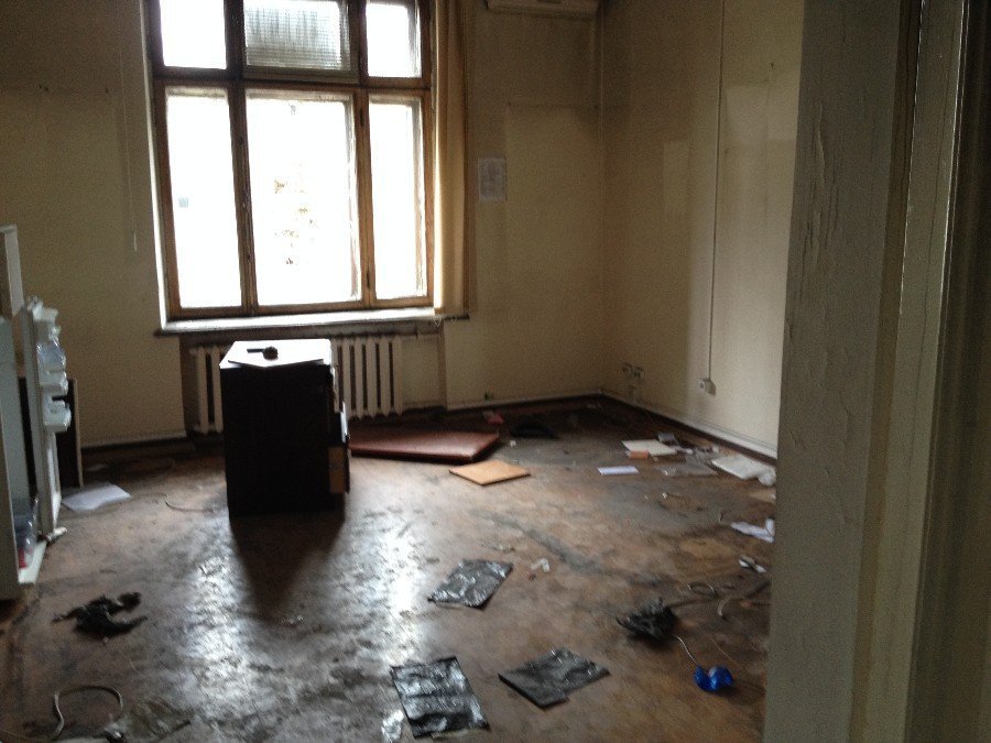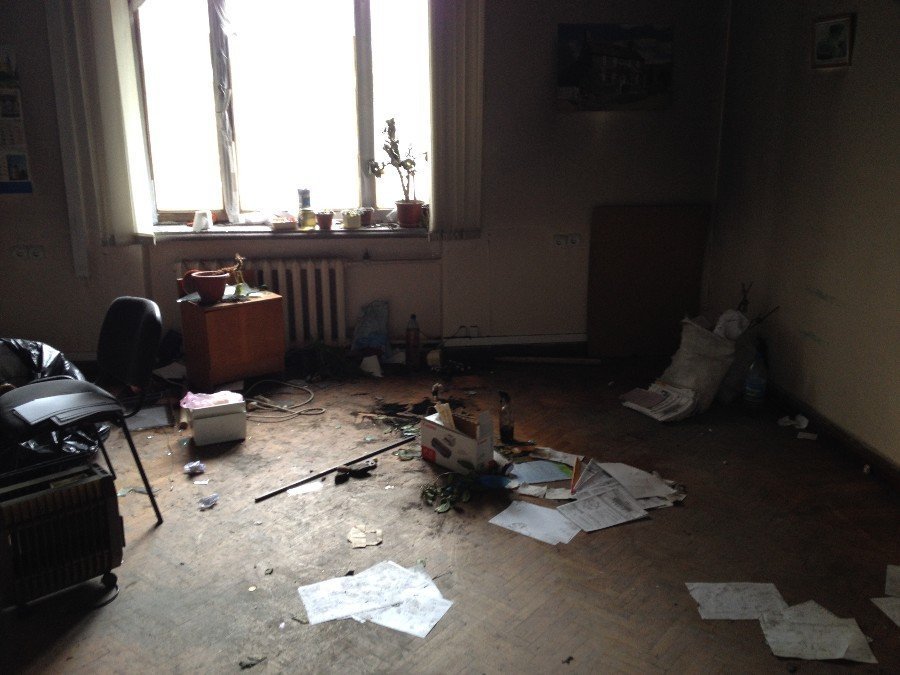 1 поверх, кімната у правому крилі Будинку профспілок від центрального входу. Кімнати і коридор трішки прокопчені, але не згорівші. Поки не зрозуміло, чому люди не втекли в бокові коридори, які не горіли ні на жодному поверсі.