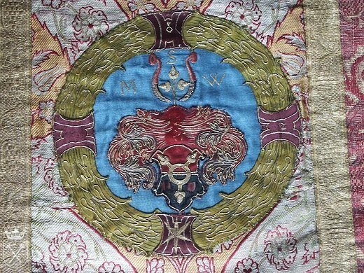 Це рід, який походив із Сілезії, але мав представників, як зрозуміло, і на наших землях. На відміну від описаних вище гербів Колумни та Корвіна, цей використовував лише один рід. У кафедральному соборі апостолів Петра і Павла герб Вольфовичів опинився на орнаті XVI століття. Уявити собі тільки річ, якій 500 років! А ось вона – з нашитим гербом. Правда, сам герб нашили на орнат після 1642 року. Орнат – елемент одягу священика.