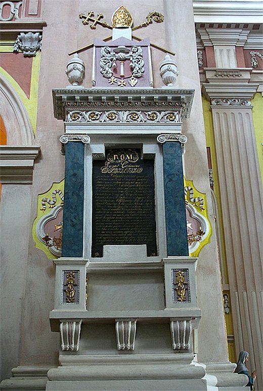 Найпишніше оздоблена епітафія у храмі присвячена єпископу Луцько-Житомирської дієцезії, архієпископу могилівському і митрополиту всіх римо-католицьких костелів у Російській імперії Касперові Цецишовському. Поважна людина свого часу, яка зробила вагомий вклад не тільки в існування і розвиток церкви, а й у справу шкільництва на Волині. У Вікіпедії стаття про Каспера Цецишовського репрезентована п'ятьма мовами.
