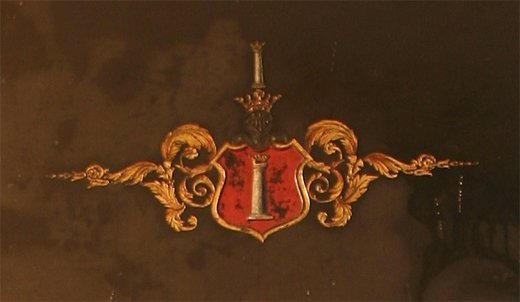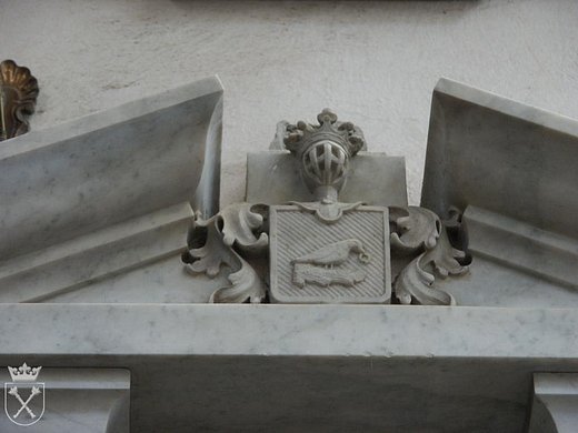Герб на цій епітафії – Колумна. Став поширюватися з XIV століття. Його однаково використовували українські, польські і литовські роди. Колона символізує легенду, за якою князь Мазовецький програв у шахи своєму лицареві. Останній поставив вельможі мат турою, яку зазвичай зображають у формі колони. Тож князь подарував лицарю герб з зображенням тури-колони і земельні володіння. Герб з ліпнини виготовлений у 1831 році.