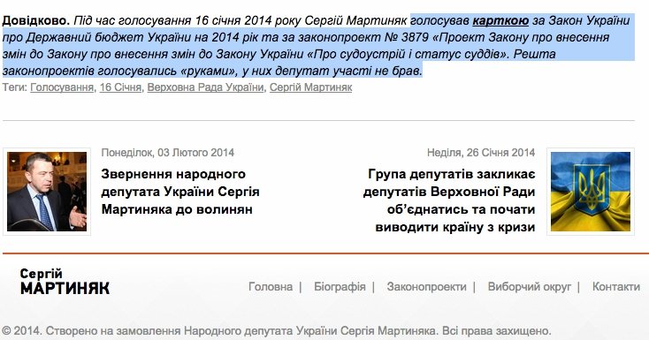 Аби не дезінформувати виборців, ми зачекали кілька днів, щоб івахівці розібралися із апаратом Ради. Так, на сайті ВРУ з’явилася інформація про те, що Івахів дійсно звернувся 3 жовтня у раду з проханням поставити статус «не голосував». По слідах одного пішли й його соратники Мартиняк та Єремєєв, які відкликали свої голоси уже 7 жовтня. Відомо, що Ігор Єремеєв, Степан Івахів та Сергій Мартиняк ще у січні 2014 року заявляли про не підтримку проголосованого 16 січня закону, зокрема на своїх персональних сайтах або фейсбук-сторінках. І навіть ініціювали 23 січня законопроект, який передбачав скасування диктаторського законодавства. Щоправда, один з них на своєму персональному сайті навіть визнав, що "голосував карткою за Закон України про Державний бюджет України на 2014 рік та за законопроект № 3879 «Проект Закону про внесення змін до Закону про внесення змін до Закону України «Про судоустрій і статус суддів». Решта законопроектів голосувались «руками», у них депутат участі не брав".