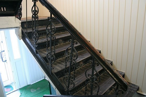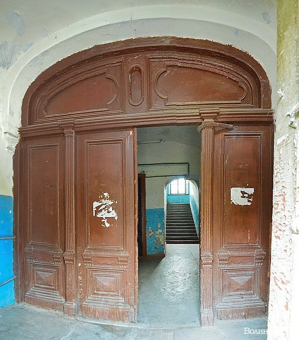Там можна знайти цілу купу старих автентичних деталей: ручки дверей, самі двері у квартиру, вентиляційні люки з зображенням сажотруса (давня луцька професія), старі профільовані перила, ну, і сходи з білого мармуру. Конструкція передбачає на стелі під'їзду світловий ліхтар. Колись це місце було зроблене зі скла і в коридор потрапляло денне світло. Екологічно, економно і практично, хоча "розумний" функціоналізм тоді ще тільки зароджувався десь на землях Баварії.