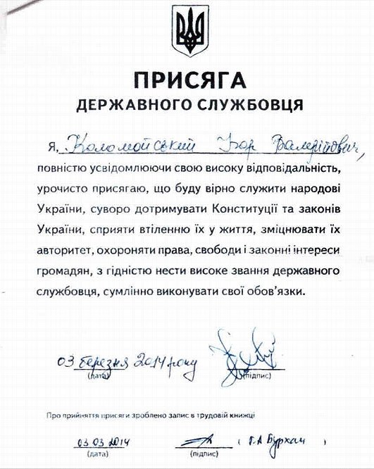 За год пребывания на посту губернатора Коломойский провел в Днепропетровске считанные дни. Всю работу за него делали замы, а сам он жил в Женеве и Киеве, решая вопросы своего бизнеса. Вчитайтесь в этот документ и сравните с поступками Коломойского. Каждое слово здесь – это даже не ирония, а сарказм.