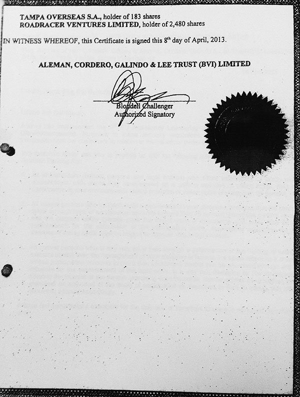 Мне также удалось достать сертификат о создании и распределении долей в этой фирме с Британских Виргинских островов.