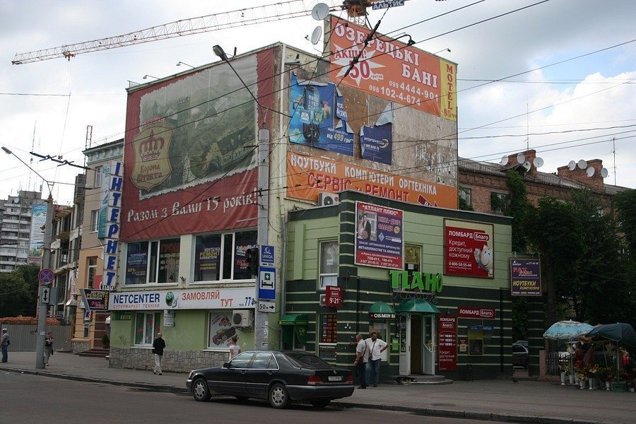 Перспектива історичних вулиць в місті просто зникає. Її затуляють як не вивіски різних магазинів, банків, то дерева. Кожен підприємець намагається вчепити більшу та "красівішу" вивіску, аніж у сусіда, абсолютно ігноруючи тверезий погляд на впорядкування фасаду. Виявляється, що вздовж вулиці, або навіть на одному будинку можна побачити цілий ряд різновеликих щитів, барви яких нагадують малюнки дітей-шизофреніків. А це все - обличчя міста. Люди не можуть вийти за рамки свого обмеженого мислення, вони забруднюють вулиці абсолютно не сприйнятними для очей об'єктами. Як же це яскраво видно на таких прикладах!