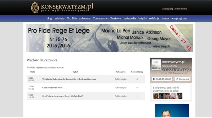 Останній, позиціонує себе представником польської меншини, яка проживає в Україні і зазначає, що сам родом з міста Луцька. На його рахунку публікації «Чи полякі хочуть нову Волинську Різню», «Час будувати стіну !», «Відділення Буковини до Румунії це лише питання часу», які розміщенні на сайтах «Geopolityka» та «Кonserwatyzm».