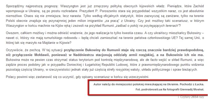 Їхнє завдання — вбивати клин у польсько-українське порозуміння, наголошуючи на певних історичних проблемах — Волинській трагедії чи УПА. Безумовно, польською специфікою є проблематика Волинської трагедії, яку Польща та Україна повинні між собою з’ясувати. Але важливо, аби ця тема обговорювалася вільними поляками та вільними українцями без зайвої участі росіян.