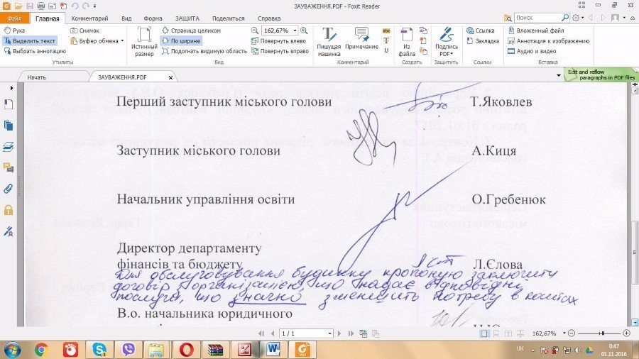Про дану невідповідність статуту КЗ із чинним законодавством депутатами «Народного контролю» було вказано начальнику управління освіти Гребенюку О.В., який обіцяв її усунути.