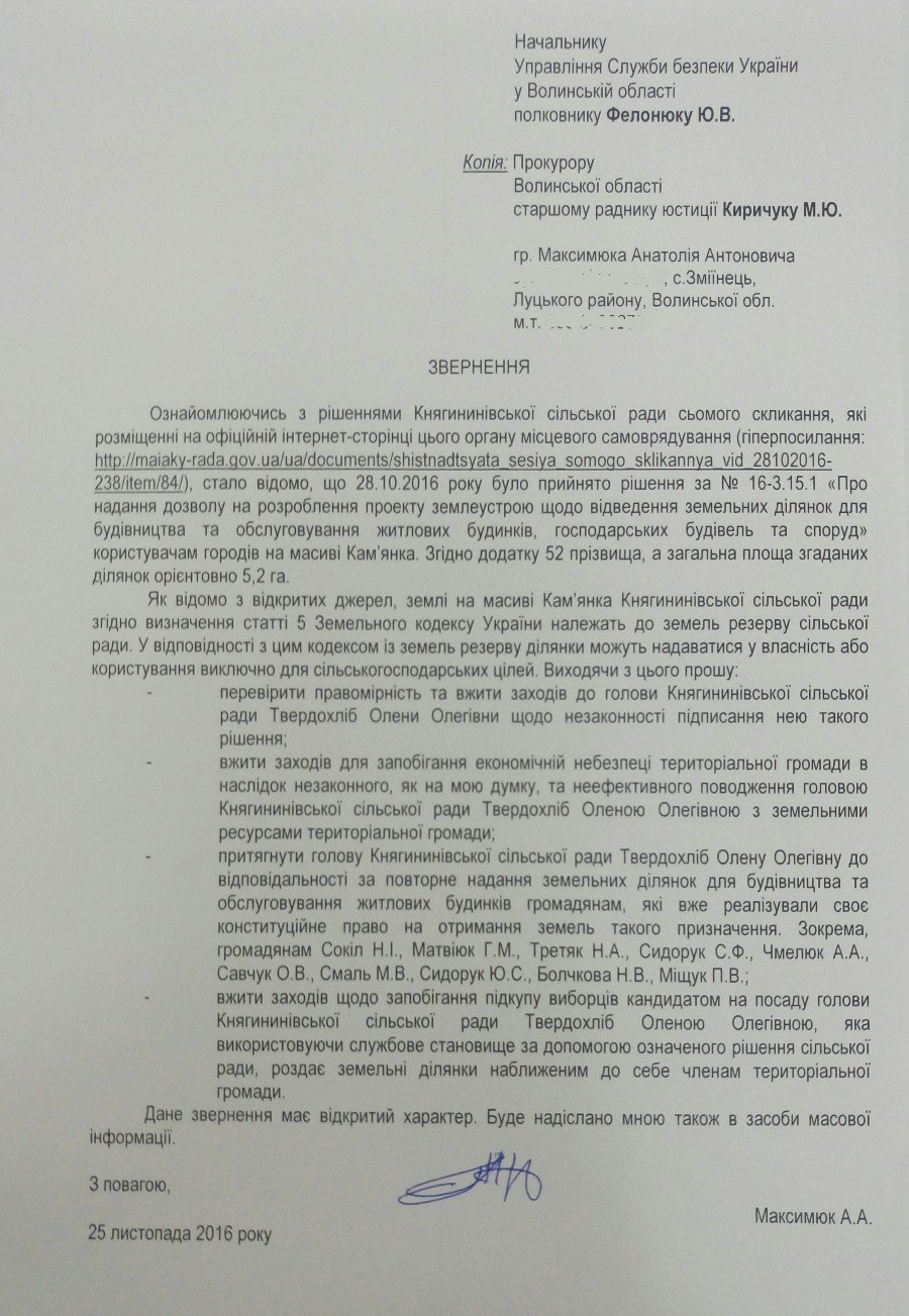 28 жовтня голова Княгининівської ради та депутати на сесії виділили 52 ділянки землі, де зараз в людей городи на Кам’янці. При тому в рішенні вказано, що земля під забудову, хоча це землі сільськогосподарського призначення і призначення ділянок ніхто не змінював. Очевидно, що землі голова дала або своїм, або тим, хто більше заплатив.