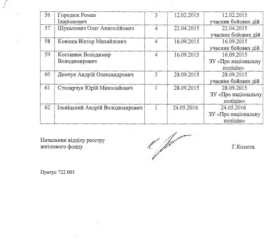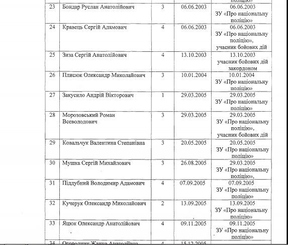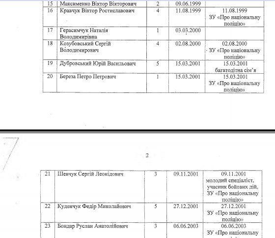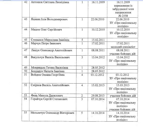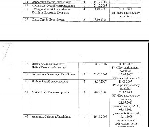А тепер до ознайомлення список працівників поліції, які претендують на житло. Ми будемо продовжувати аналізувати імена зі списку.
