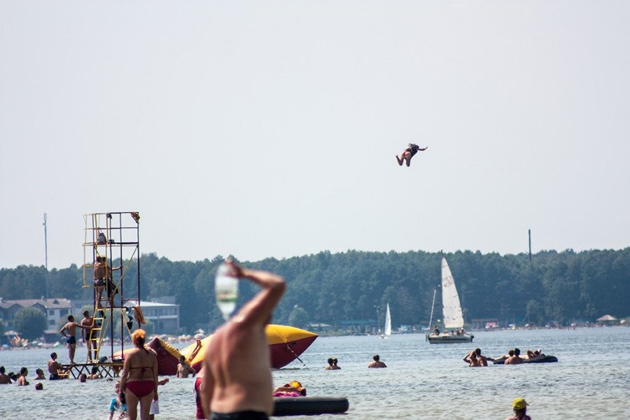 На пляжі бізнес теж процвітає. Водні атракціони заманюють любителів екстремального відпочинку. Коштує таке задоволення від 2 до 20-ти гривень.