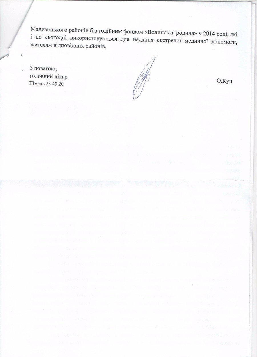 Ви тільки уявіть – ДЕСЯТЬ ТИСЯЧ селян з 25 населених пунктів навколо пункту ЕМД два роки жили без швидкої допомоги! Відповідно до законодавства цю швидку їм мав би передати «Волинський обласний центр екстремальної медичної допомоги та медицина катастроф». Але за два роки Центр так і не спромігся це зробити. Тому на прохання райради та жителів району ми втрутилися в цю ситуацію.