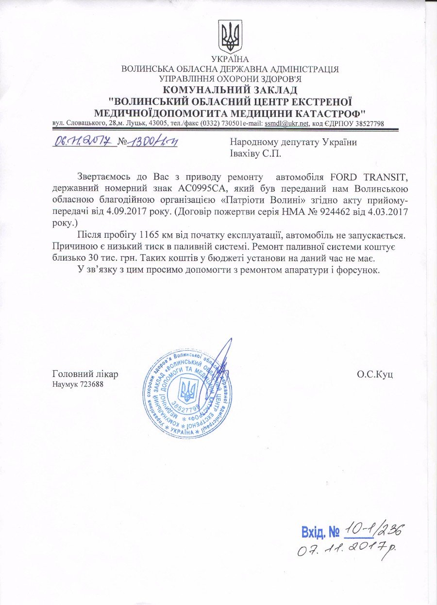Коли ми передавали Ford Центру, то пообіцяли: всі витрати на його ремонт в разі потреби наш фонд бере на себе.
