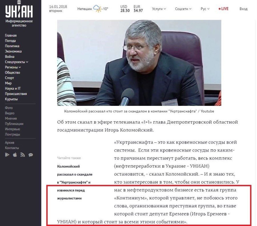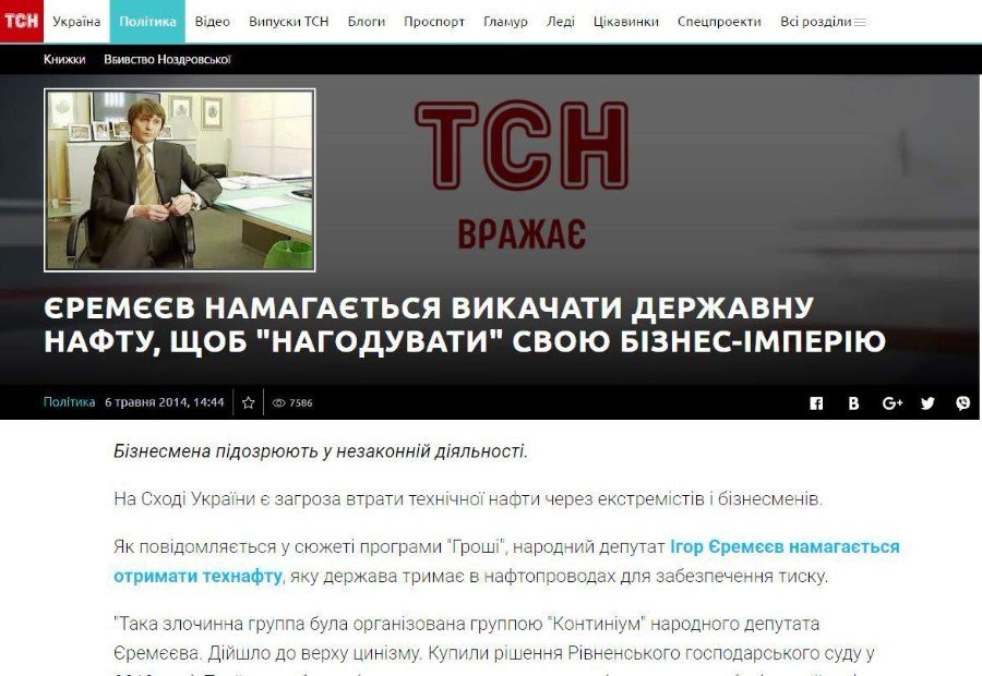 Причина цього зрозуміла: власник каналу Ігор Коломойський і його бізнес-партнер Ігор Палиця – давні і запеклі конкуренти Єремеєва на нафтовому ринку. Тож і інші медіа-активи Коломойського-Палиці – ІА “УНІАН”, сайт “Волинські новини” та інші – не називали Єремеєва інакше, як “корупціонер”, “соратник Януковича”, “підступний махінатор” тощо…