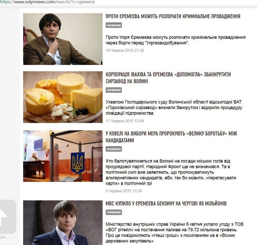 Місцеві «Волинські новини» теж не упускали можливість розповісти «правильну» інформацію про Єремеєва.