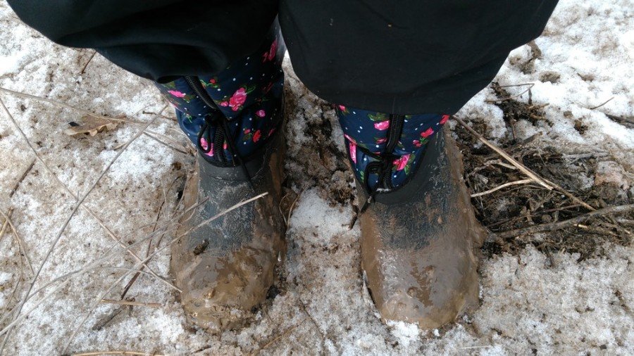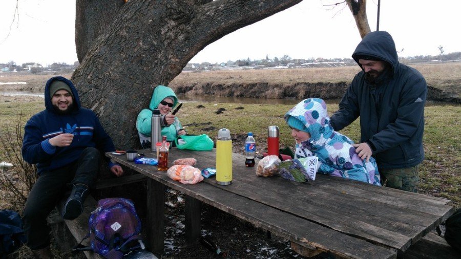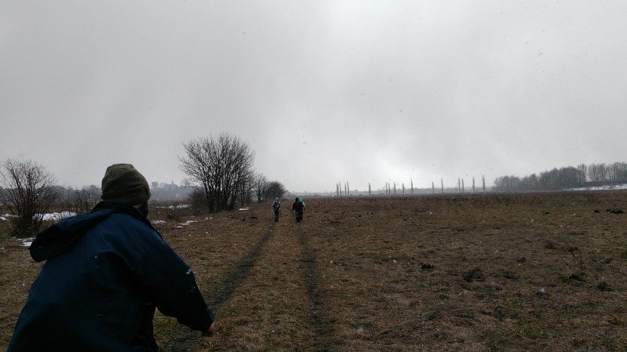 Ми пили гарячий чай на привалах, сміялися, коли з гулом провалювалися у вже непевний сніг, йшли через сміттєзвалище, оминаючи величезні купи памперсів (водночас пропонуючи партнерам по команді приміряти викинуті гумові чоботи), розглядали вивезені в поле холодильники, мерзли під мостами, перекушували згущеним молоком, натирали ноги і навіть зо два рази пробували затягти пісню.