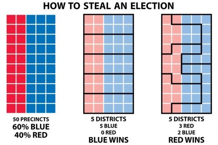 Ця схема показує, як «джерімандерінг» спотворює реальну картину